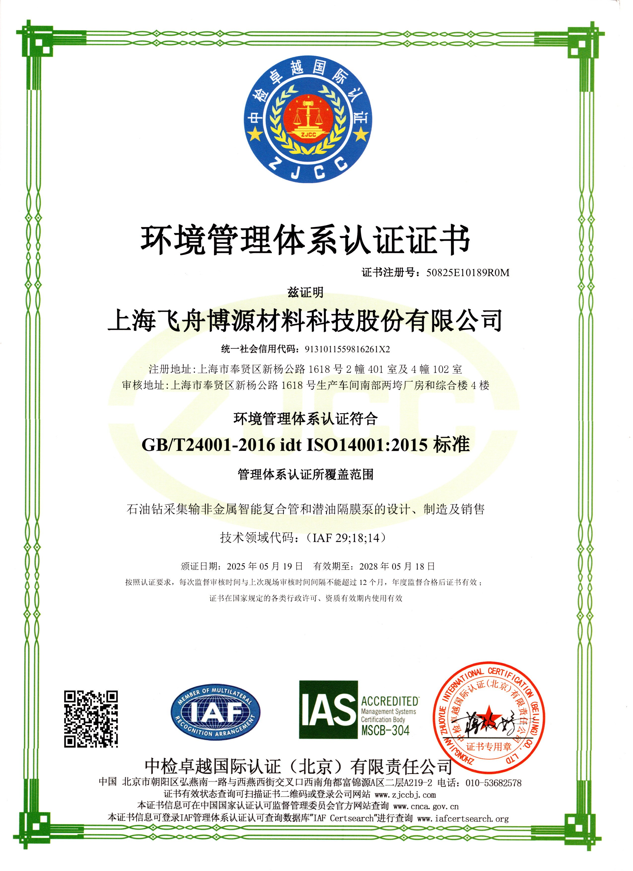 ISO 14001:2015环境管理体系认证,证明公司对环境保护的承诺和责任。